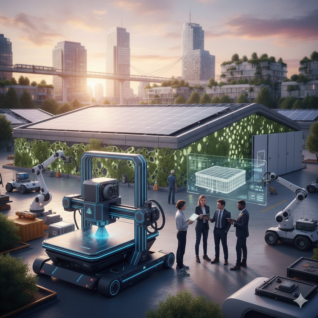 - Stampa 3D su Larga Scala: Case stampate in poche ore con miscele di terra cruda o polimeri bio-based stanno passando dai prototipi ai quartieri residenziali veri e propri.